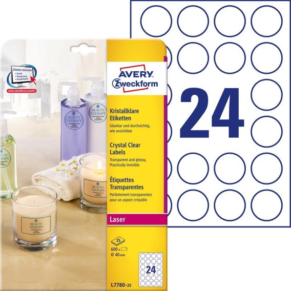 Etykiety Crystal Clear L7780-25 40 25 ark. przezroczyste Avery Zweckform |