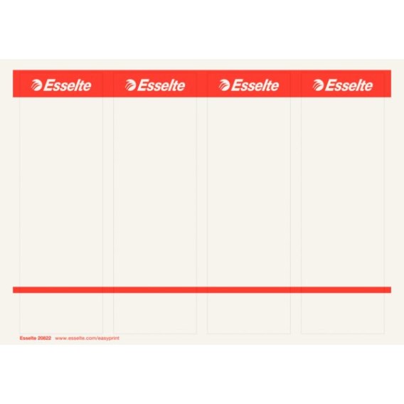 Kartonowe etykiety do samodzielnego drukowania w drukarce_- Pasują do segregatorów Esselte no. 1 Power i ekonomicznych. _- Dedykowany specjalny program na stronie www.esselte.com/easyprint dzięki której można zaprojektować własne, niepowtarzalne etykiety z możliwością ich zapisania na dysku twardym i używania projektu w każdej chwili._- Etykiety w dwóch wersjach: standardowej lub samoprzylepne._- Kolor biały, po 10 arkuszy w opakowaniu_- jednostka sprzedaży 1 opakowanie
