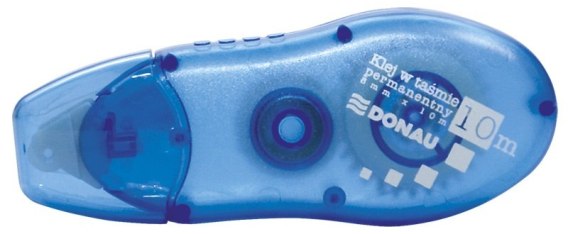 Uniwersalny klej w taśmie_do klejenia papieru, kartonu, zdjęć, itp._substancja klejąca umieszczona na taśmie, co umożliwia szybkie i precyzyjne nakładanie kleju_końcówka zabezpieczona specjalną osłoną_ergonomiczna, poręczna obudowa_długość taśmy: 10m_szerokość taśmy: 8mm_kolor transparentny
