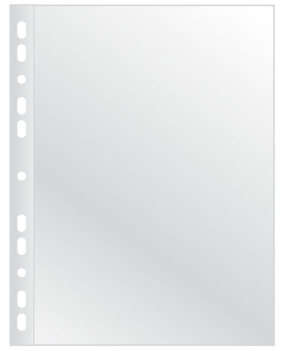 Wykonane z miękkiej, gładkiej folii polipropylenowej o grubości 75_m_posiada właściwości antyrefleksyjne_krystaliczne, transparentne_wzmocniony brzeg_rozcięte na górze_antyelektrostatyczne_odpowiednie do dokumentów w formacie A4_ilość dziurek do wpięcia: 11_rozmiar: 228x305mm_100 sztuk w j.s._wyprodukowane w fabryce posiadającej certyfikat kontroli jakości GB/T 19001-2016/ISO 9001:2015_kolor transparentny