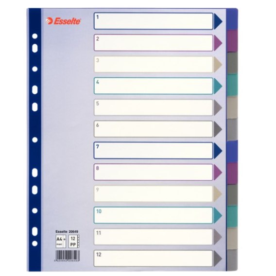 | Nazwa B2B | Przekładki plastikowe Multicolor PP, A4 Maxi - 12 kart ESSELTE |