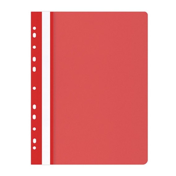 Wykonany z polipropylenu_strona przednia transparentna - grubość: 100_m_strona tylna kolorowa - grubość: 170_m_mieści ok. 200 kartek_posiada 11 dziurek do wpięcia do segregatora_wymienny, dwustronnie zapisywalny papierowy pasek brzegowy_format: A4_rozmiar: 237x310mm_kolor czerwony