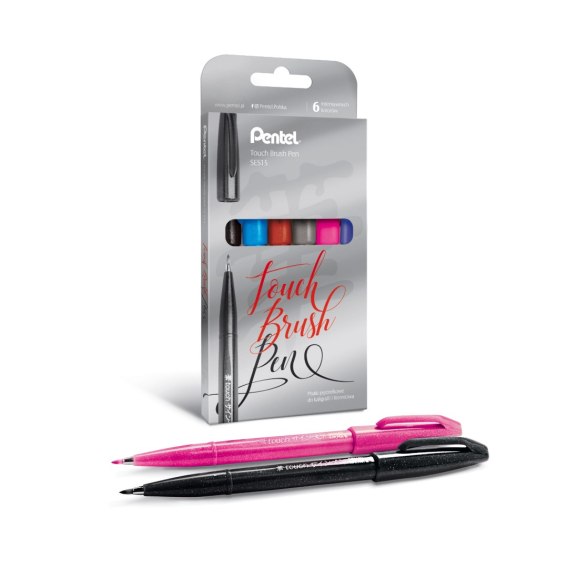 Zestaw pisaków pędzelkowych do kaligrafii i liternictwa SES15C-ST6ACENPVPL PENTEL Pentel