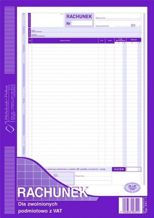 231-1 Rachunek A4 dla zw.z VAT MICHALCZYK I PROKOP Michalczyk i Prokop