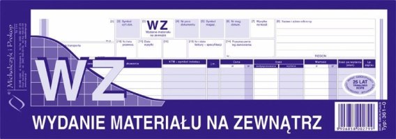 WZ wydanie materiałów na zewnątrz