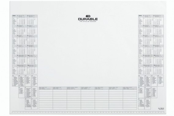 Podkłady na biurko z kalendarzem są użytecznym narzędziem w codziennej pracy. Oprócz tego, że są wygodne w zapisywaniu informacji, to podkładka umożliwia jeszcze bezpośrednie zapisywanie notatek i terminów. _ Wymienny wkład do podkładu na biurko nr produktu 7291 _ Wkład z 25 arkuszami i z 2-letnim kalendarzem _ Z przeglądem świąt w dziewięciu krajach _ Idealny do notatek _ Wymiary: 570 x 410 mm (S x W)