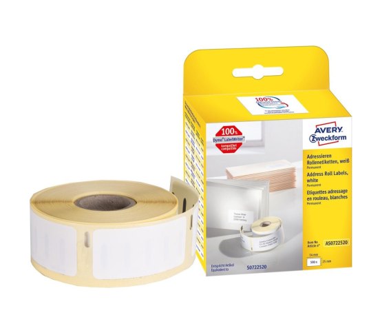 | Katalog_2021naz | Etykiety adresowe AS0722520 25x54 500 et. w rolce do termodruku, białe, Avery Zweckform |