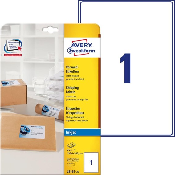 Etykiety wysyłkowe J8167-25 199,6 x 289,1 25ark. białe Avery Zweckform (X) Avery Zweckform