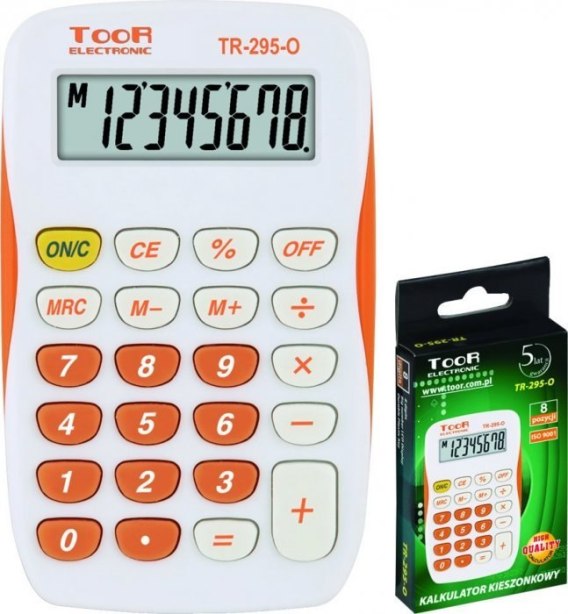 Kalkulator TOOR TR-295-O BIAŁO-POMARAŃCZOWY, 8 pozycyjny, kieszonkowy 120-1419 Toor