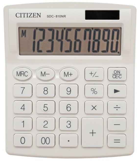 Kalkulator biurowy CITIZEN SDC-810NRWHE, 10-cyfrowy, 127x105mm, biały CITIZEN