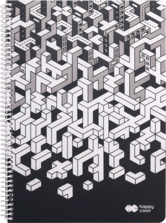 Design kolekcji Just, utrzymany w kolorystyce minimalistycznej, czarno-białej oraz z delikatnymi elementami pomarańczowymi. Sztywna okładka PP. Spirala dopasowana kolorystycznie do designu okładki. Biały papier 80g w szarą kratkę. 80 kartek. Format: B5 lub A4. 4 szt. w opak. zb.