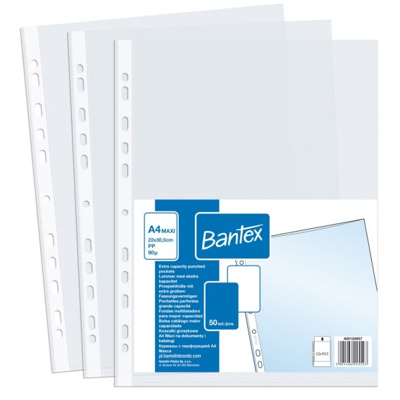 Koszulki groszkowe, poszerzane A4+ MAXI 90mic., w folii (50szt) BANTEX 400124957 Bantex