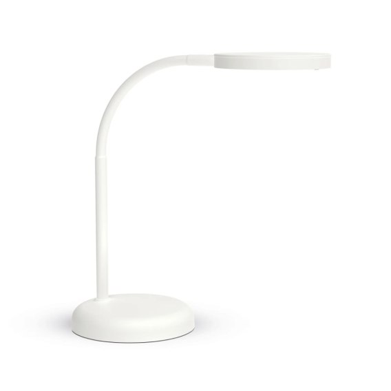 Lampa biurkowa LED MAULjoy w kolorze białym. Atrakcyjny design z matową powierzchnią, dostępna w kilku modnych kolorach. Doskonałe ożywienie i uzupełnienie biurka dla każdego ucznia, studenta czy pracownika _ dla każdego kto kocha kolory. Ekonomiczna _ wykorzystuje nowoczesną technologię oświetlenia LED. Kompaktowy kształt zapewnia oszczędność miejsca i poręczność, zapewniając przy tym odpowiednie oświetlenie obszarów roboczych. Regulowane ramię gwarantuje ustawienie idealnego kąta nachylenia. Wykonana z wytrzymałego tworzywa sztucznego i metalu. Wyjątkowo stabilna dzięki specjalnemu obciążeniu podstawy.Dane techniczne:Wymiary: wysokość robocza w standardowej pozycji: 33,5 cm, głowica oświetleniowa: O 11,8 cm, ramię: 35,8 cm, podstawa: O 13,7 cmDługość kabla: 1,8 mGwarancja: 2 lataNatężenie oświetlenia: 1880 lx w odległości 33 cmTemperatura barwowa: 3000K (światło białe ciepłe)Liczba źródeł światła: 1Klasa energetyczna: DZużycie energii: 5 kWh/1000 hŻywotność: L70B50 - 15000 godzin świeceniaStrumień świetlny: 769 lmWłącznik: w głowicy lampyMoc znamionowa: 7WNapięcie zasilania: 220-240 VKoncepcja bezpieczeństwa technicznego opracowana przez MAUL: gwarancja bezpieczeństwa lampy biurkowej LED MAULjoy potwierdzona przez zespół ds. optycznych, elektronicznych i mechanicznych oraz zespół inżynierów produkcji.