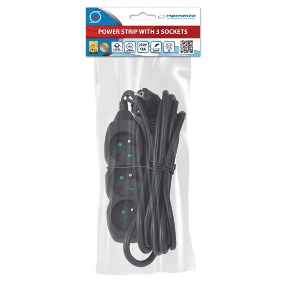 • Listwa zasilająca przedłużacz 3 gniazda czarna 3m ESPERANZA ELK204K Esperanza