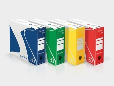 _Wykonany z bezkwasowej tektury falistej (fala B)__Przeznaczony do archiwizacji dokumentów lub segregatorów__Format A4__Szerokość grzbietu 80mm__Innowacyjna gama kolorystyczna__Wymiary: 330 x 290 x 80 mm