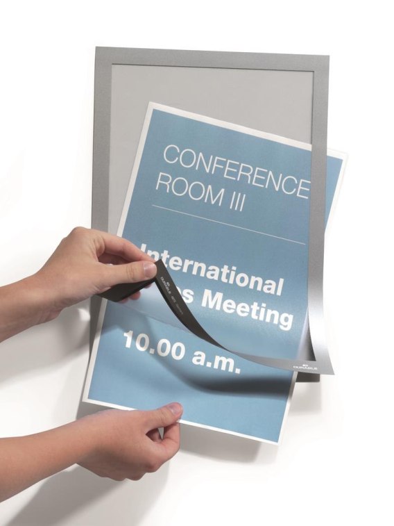 Durable MAGAFRAME_- samoprzylepna magnetyczna ramka z uchylną przednią stroną - wyjątkowe nowoczesne wzornictwo - w zestawie znajduje się specjalna półprzezroczysta folia, na której wykonywany jest wydruk- tak przygotowaną informację umieszcza się pomiędzy dwie akrylowe płytki i zaciska metalowymi nakrętkami - Całość tworzy bardzo ciekawe przestrzenne formy _- jednostka sprzedaży 1kpl.