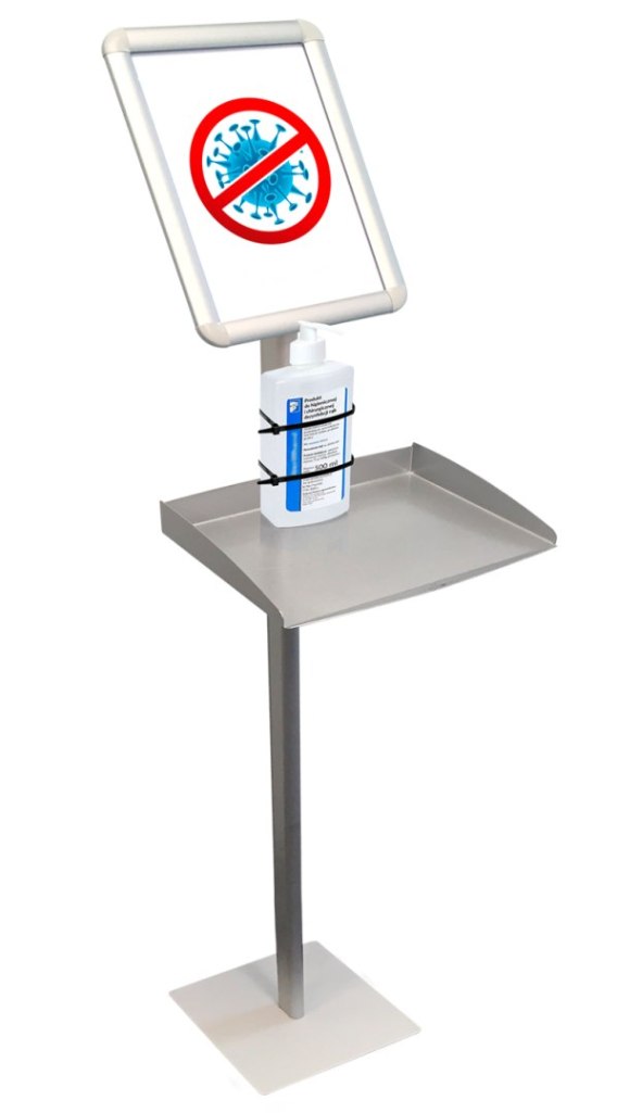 Stojak do dezynfekcji SIS1500/80 z tabliczką informacyjną haczyki na zrywki PÓŁKA OBNIŻONA 2x3
