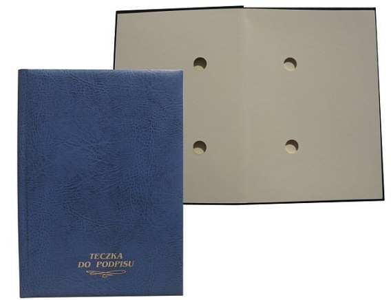 Teczka do podpisu Warta_- okładka twarda, oklejana_- grzbiet kryty_- blok z kartonu barwionego zawiera 10 kart z 2 otworami_- polecamy wykonanie teczek z logo firmy w innej kolorystyce i liczbie kartek_- jednostka sprzedaży 1 sztuka