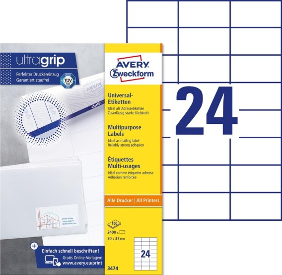 | Katalog_2021naz | Trwałe etykiety uniwersalne 3474 70 x 37 100 ark białe Avery Zweckform |