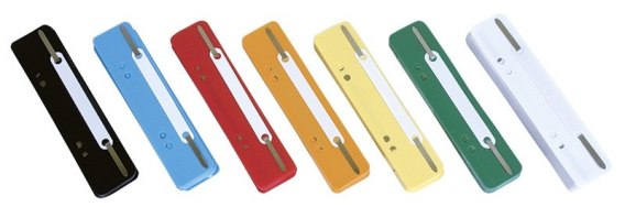 Metalowe wąsy skoroszytowe, spinające_podstawa wykonana z ekologicznego polipropylenu, wąsy wykonane z aluminium_4 dziurki do wpinania_rozmiar: 150x34mm_25 sztuk w j.s._mix kolorów