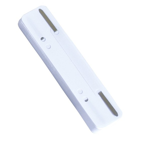 Metalowe wąsy skoroszytowe, spinające_posiada Zielony Punkt (Der Gr_ne Punkt) - udział w systemie recyklingu i odzysku odpadów wynikający z przepisów prawa polskiego i UE_podstawa wykonana z ekologicznego polipropylenu, wąsy wykonane z aluminium_4 dziurki do wpinania_rozmiar: 150x34mm_25 sztuk w j.s._kolor biały
